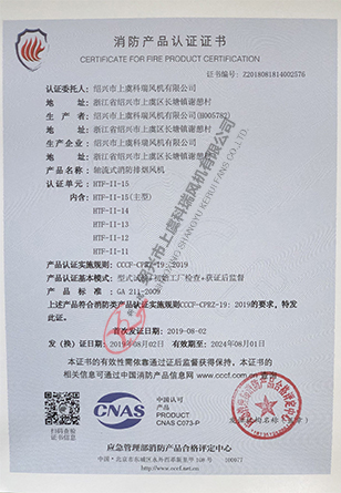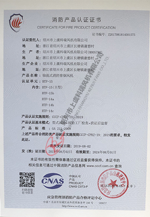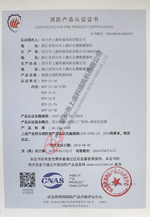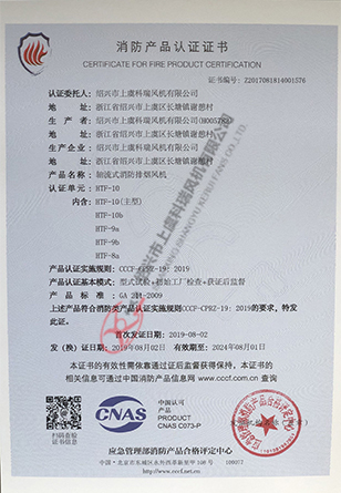 軸流式消防排煙風機 HTF10-證書