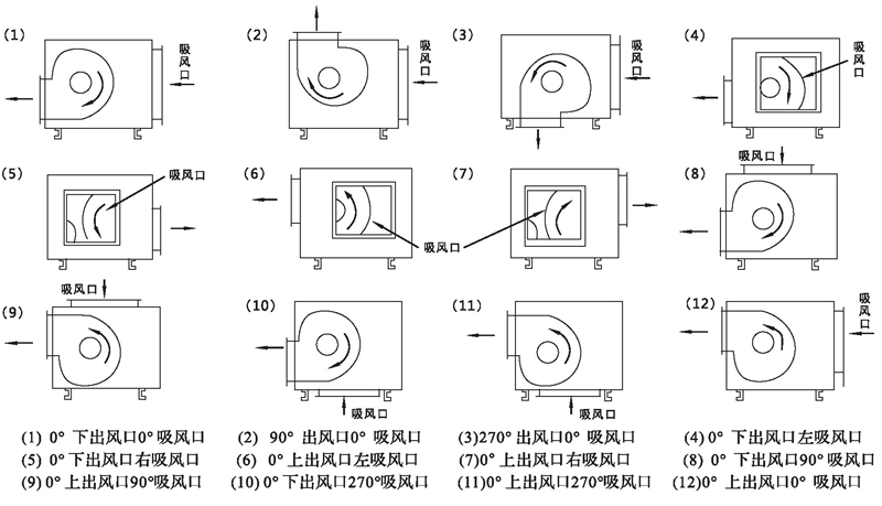 2.機號NO為葉輪直徑英寸數,如電機放在風機上面,A型高度須補加電機高度,寬度須補加皮帶罩寬度;如電機放在風機側面,A型寬度須補加電機長度。