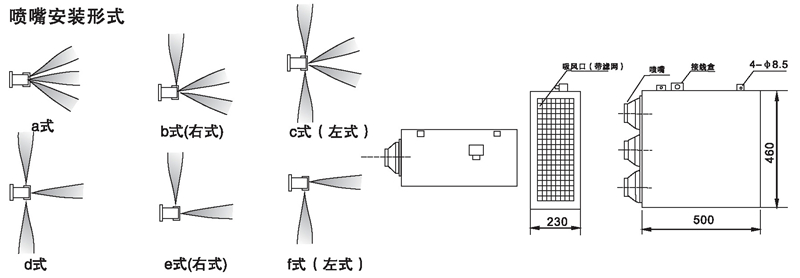 四、外形尺寸及噴嘴安裝形式